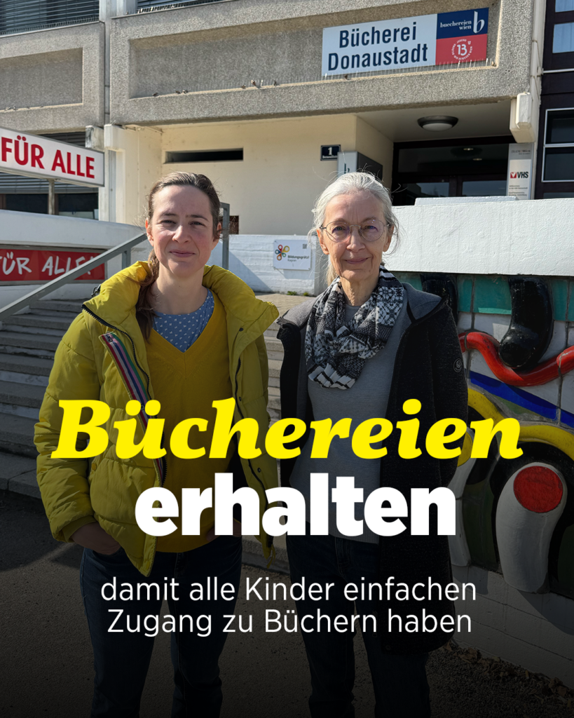 Die Bücherei in der Bernoullistraße ist bald Geschichte. Damit gibt es nur mehr zwei Büchereien für ca. 230.000 Menschen in der Donaustadt. Das reicht nicht aus!